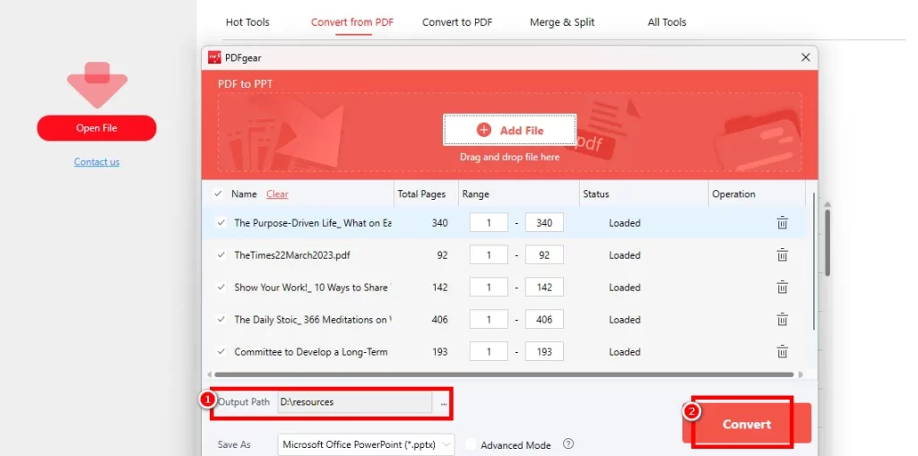 Choose the output path for the converted PPT files and click the “Convert” button. Once the conversion is complete, a folder will appear, allowing you to easily locate the files.